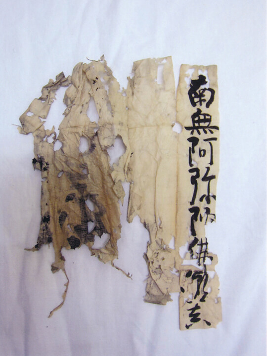 南無阿弥陀佛の六字名号と経文が納められていました。