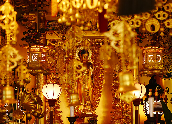 阿弥陀如来立像を本尊に据える本堂。川辺西国観音霊場三十三所の第三十一番札所にもなっています。